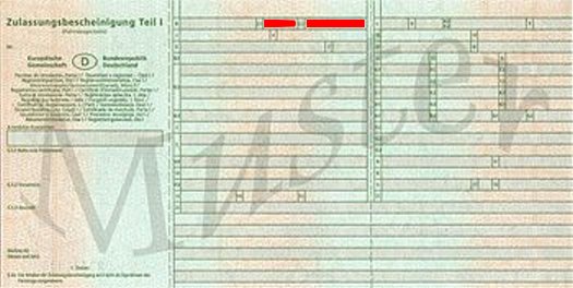 Diese finden Sie in Ihrer Zulassungsbescheinigung unter 2.1 (HSN) und 2.2 (TSN)